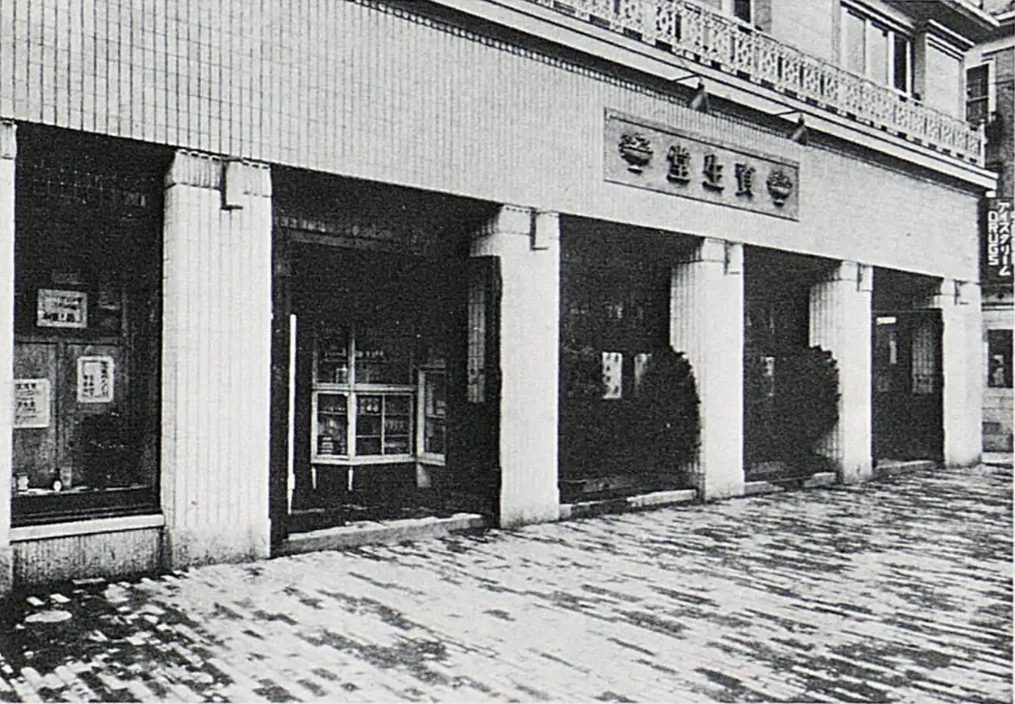 大正時代当時、1916年(大正5年)に同地は薬品部が移転し、資生堂出雲町店という名称で飲料部(及び化粧品部)が営業された。1921年(大正10年)に外装は白タイル張り、二階も白く塗装、手すりも白で統一し「白の殿堂」を意図する建物に改装されました。